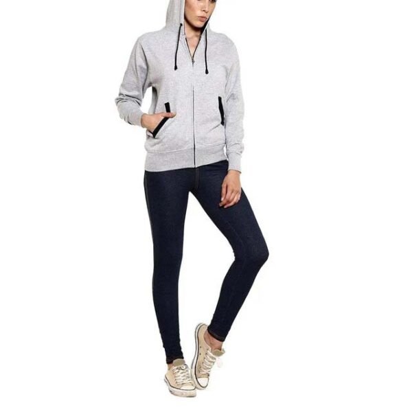 This ladies hooded sweatshirt offers a simple design with a comfortable fit. It works well for daily use and casual outfits.